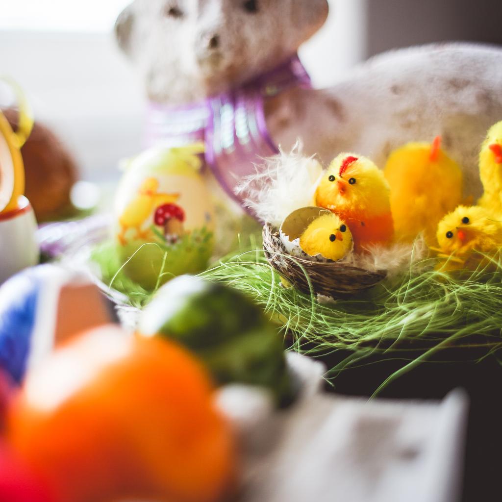 Colorful Easter Decorations Wallpaper, 1024x1024 Resolution.