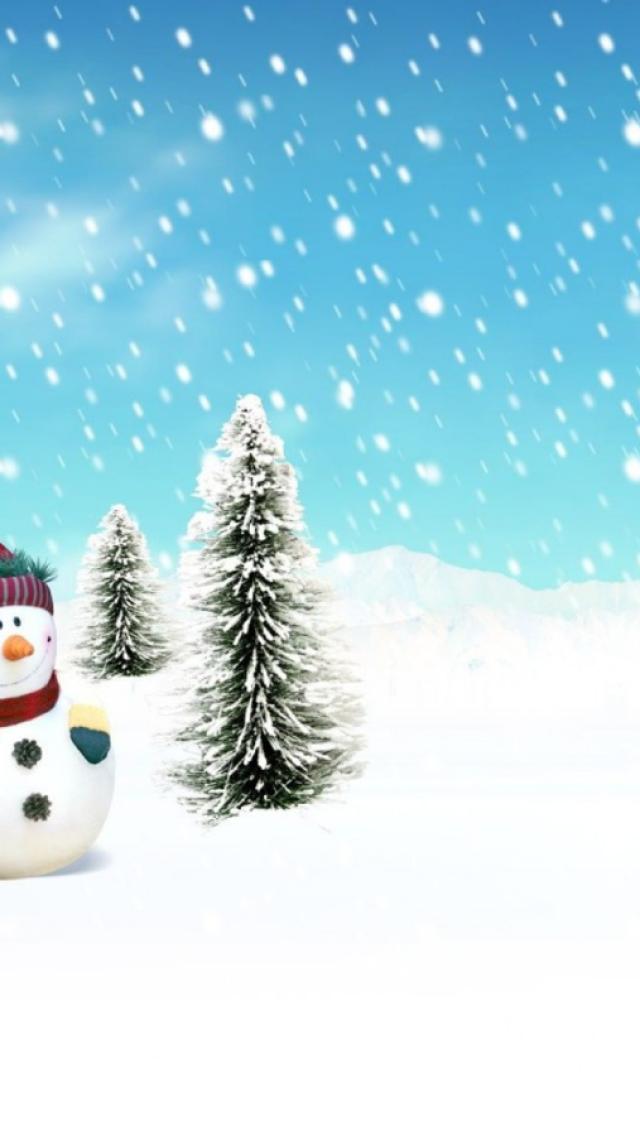 Free Christmas Snowman in Snow Wallpaper, 640x1136 Resolution.