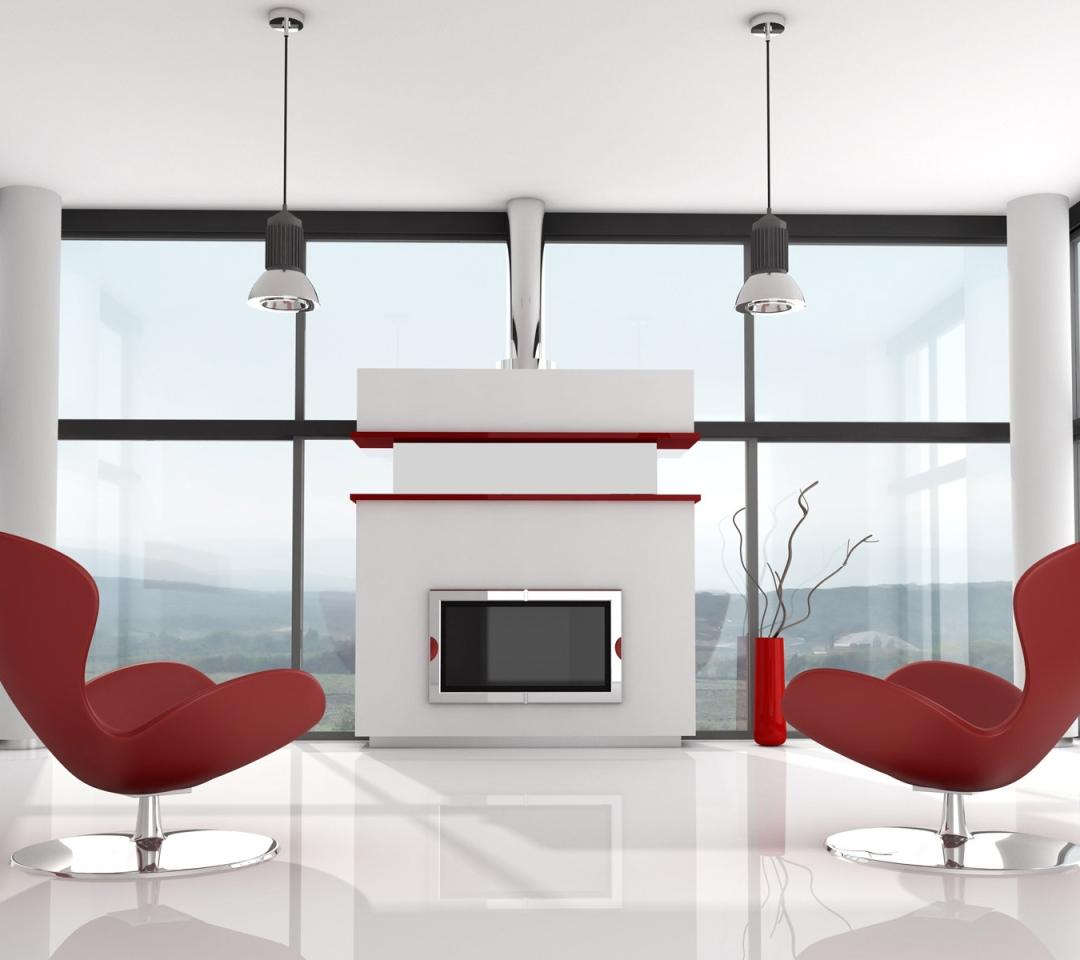 Modern White and Red Interior Wallpaper, 1080x960 Resolution.