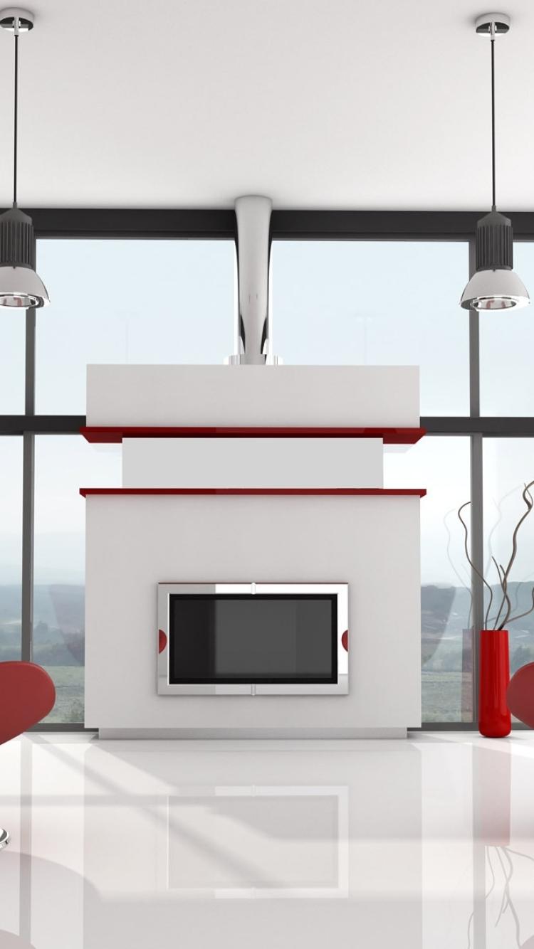 Modern White and Red Interior Wallpaper, 750x1334 Resolution.